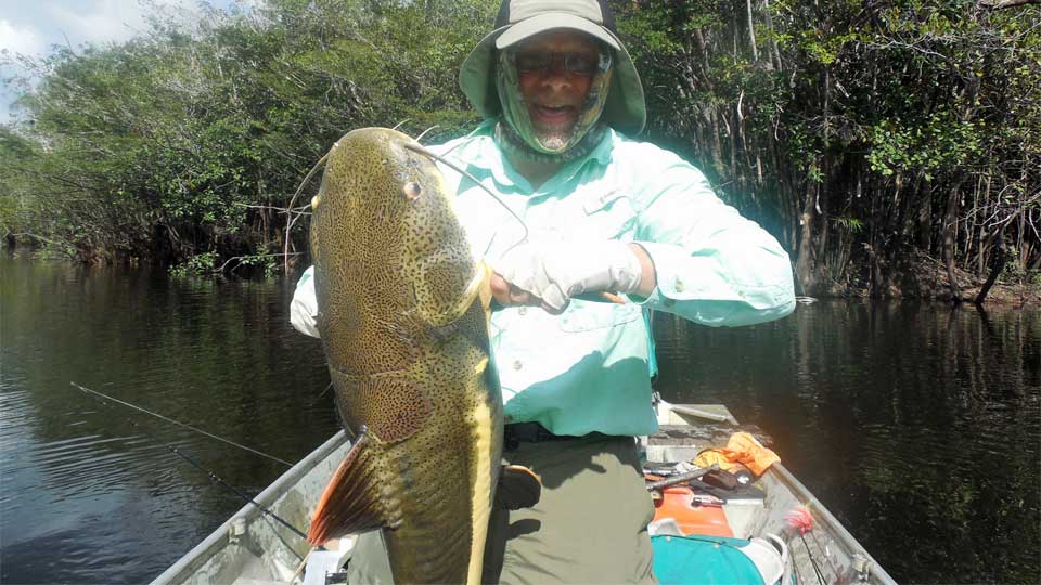 Sunday: Breakfast at 6:00 a.m. At 7:00, you will be transported to your Cessna Caravan charter plane for the 90-minute flight to your safari camp, which is located on private Indian lands northwest of Manaus. You will settle in, have lunch, and fish in the afternoon, and return to your floating cabin around 5:00 p.m. for dinner and the night.